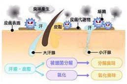 腋臭又称臭汗症,是腋下异常分泌的大量黄色粘稠脂肪酸,经体表细菌分解,散发的难闻异味,其和狐狸肛门排出的气味相似,所以也常被称为狐臭。